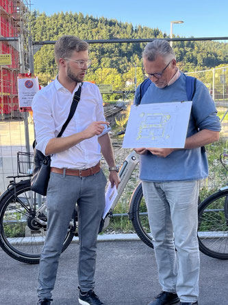Hier sollen als Ergänzung der bestehenden Bauten 8 Wohneinheiten in modularem Holzbau erstellt werden. Thomas Haustein, Bauingenieur bei der Freiburger Stadtbau ((FSB)(Bild unten, links)), stellte das Projekt ausführlich vor.